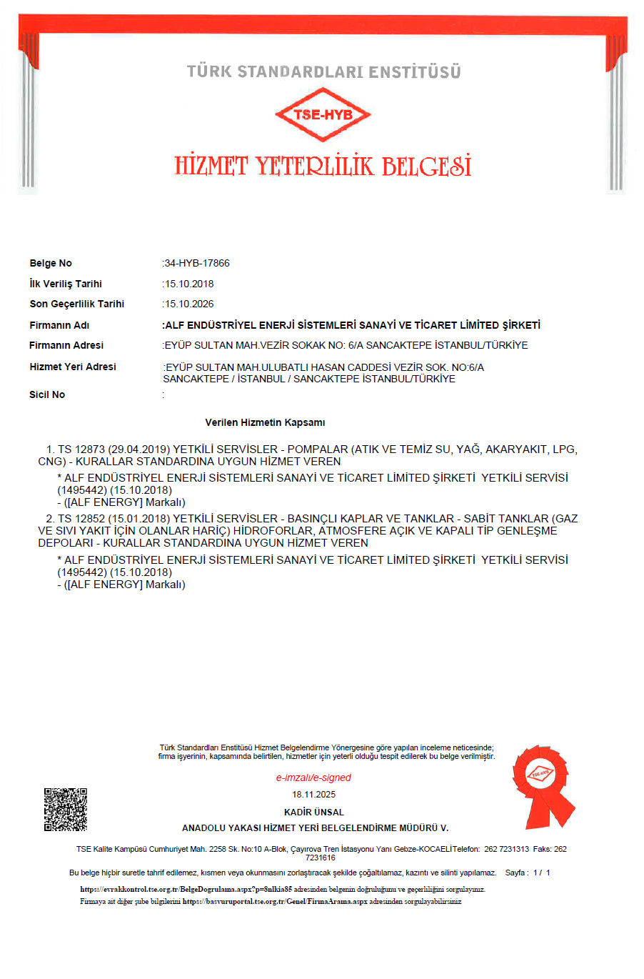 Hizmet Yeterlilik Belgesi