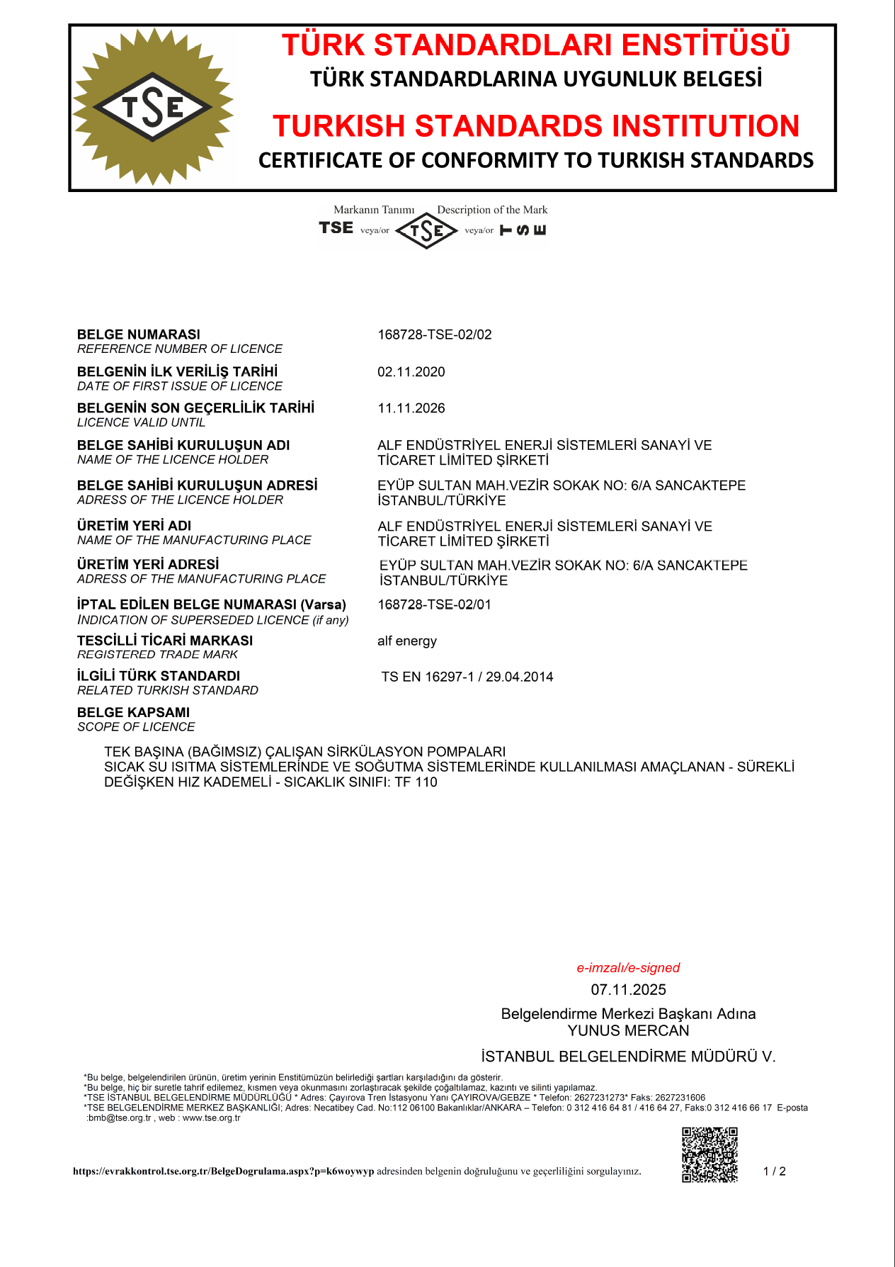 Islak Rotorlu Sirkülasyon Pompası TSE