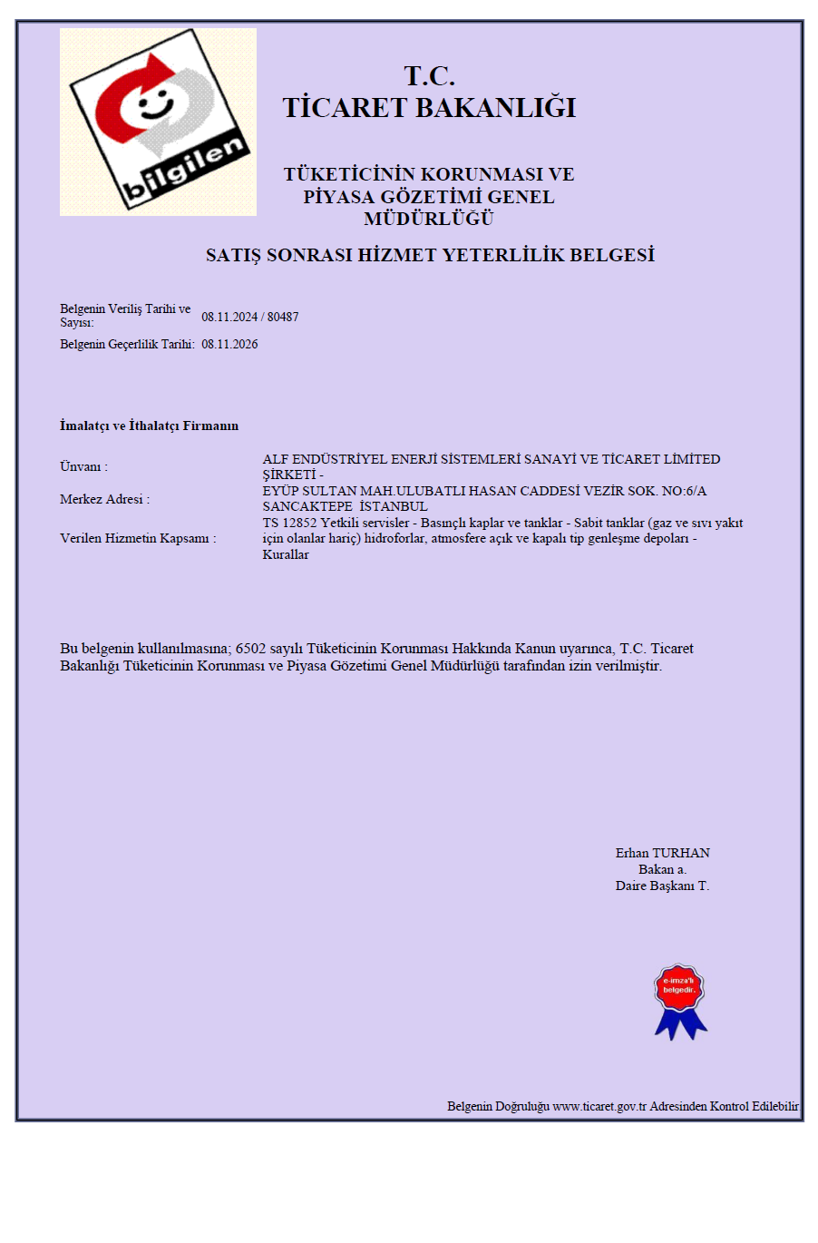 Hizmet Yeterlilik Belgesi
